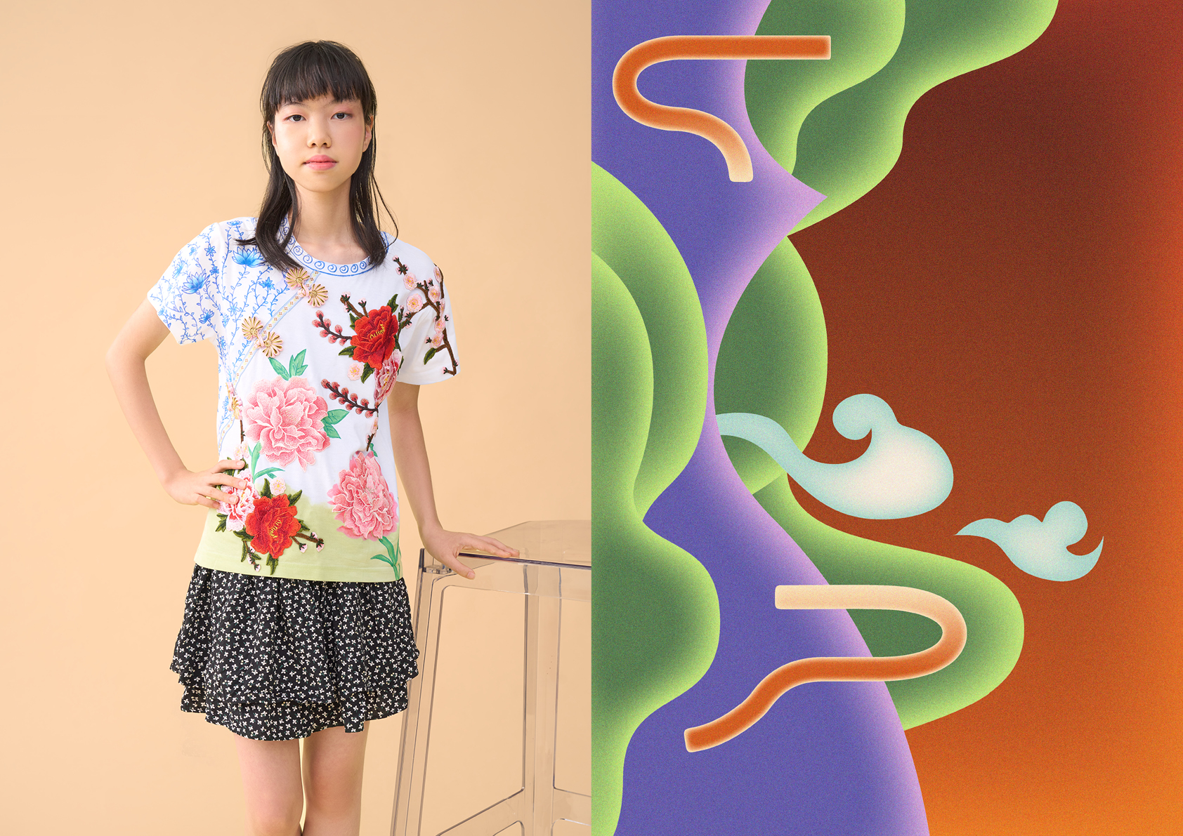 由於青花瓷歷史悠久和精緻,所以我把精美的青花瓷的花紋畫在衣服上。牡丹花非常美麗,我也把牡丹花展現出來。