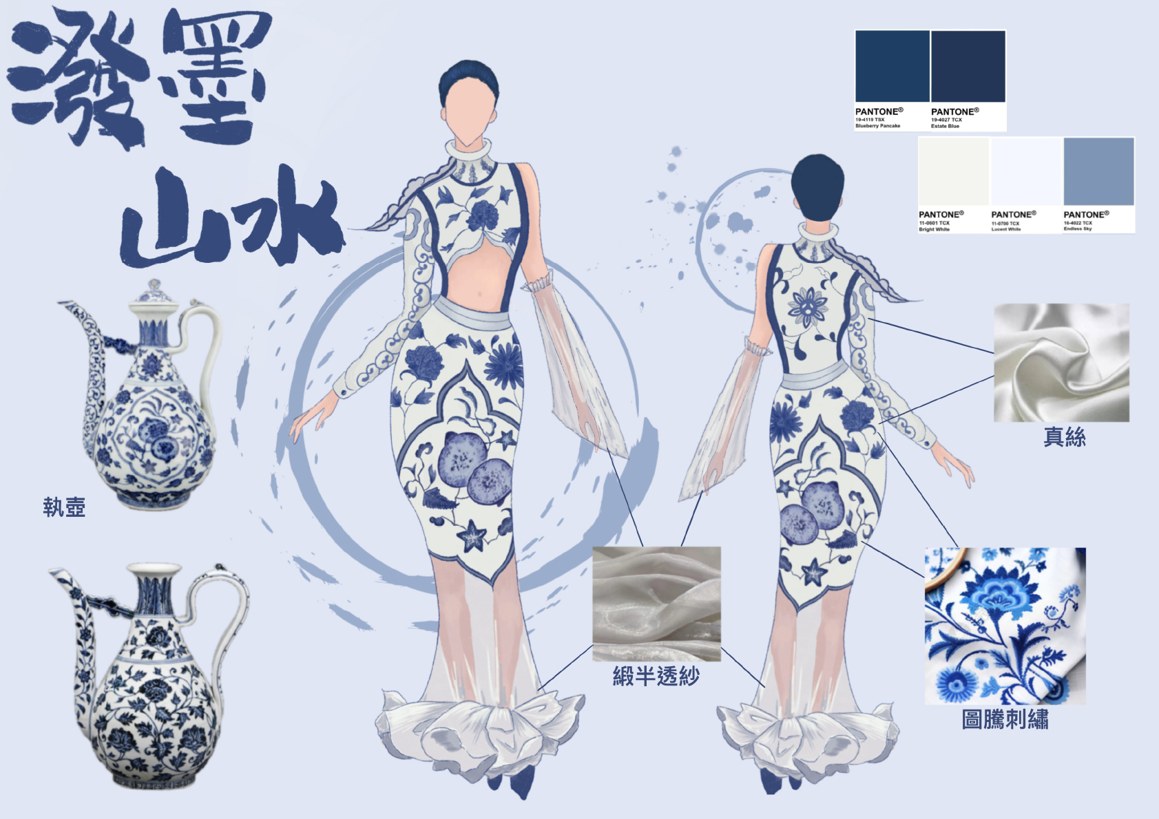 執壺,在唐宋兩代是金銀器中的一種酒具。而在明代,青花執壺採用了金銀器執壺造型的優點,安定、秀美而靈活。由於瓷的質料和青花繪畫互相配合,青花執壺顯得高妙雋雅,正如明代同形狀的雕漆器「仙盞瓶」一般,喚起一種夢幻感覺。比起傳統威猛的神獸,執壺的流線外型更能突顯出中國女性的溫婉迷人,而利落的弧線剪切更突出了她們的行事果斷堅定,不偏不倚,重心適宜,別具一種中國女性的優雅。